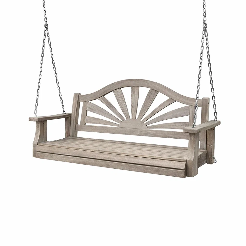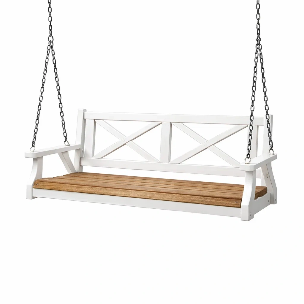 Balancelle de porche en bois avec chaînes en métal
