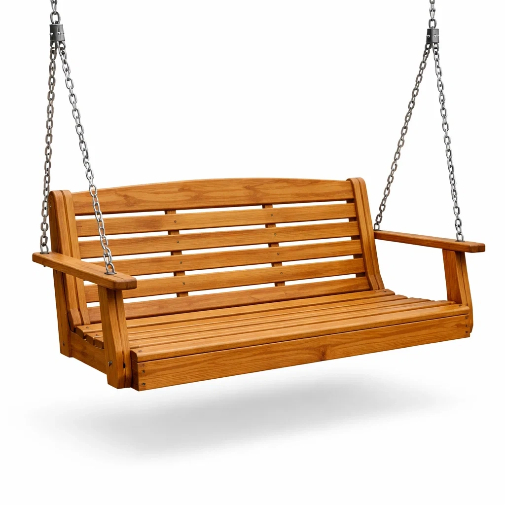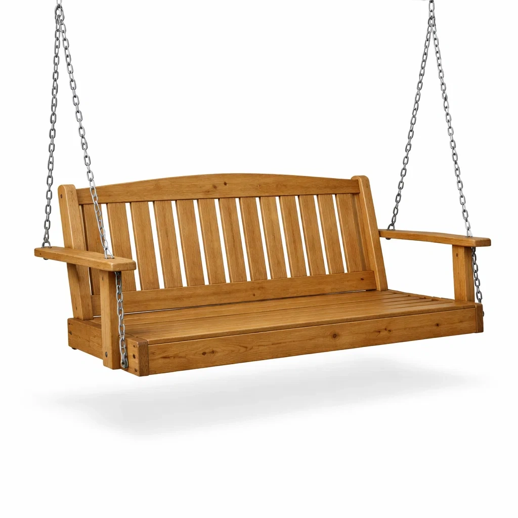 Balancelle de porche en bois avec chaînes en acier