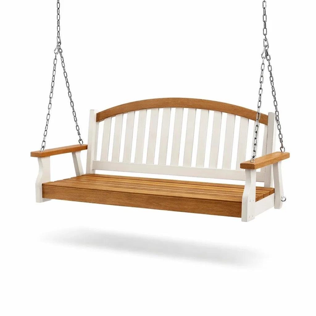 Balancelle de porche en bois naturel et blanc