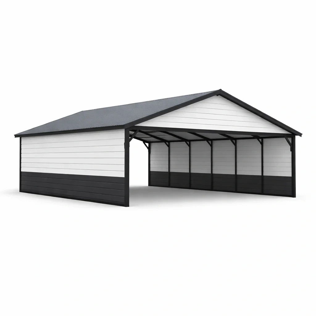 Abri voiture en acier galvanisé avec revêtement en poudre, résistant à la corrosion et aux intempéries.