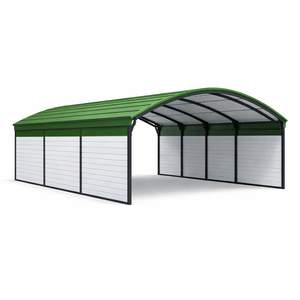 Abri voiture en métal en acier galvanisé vert et blanc