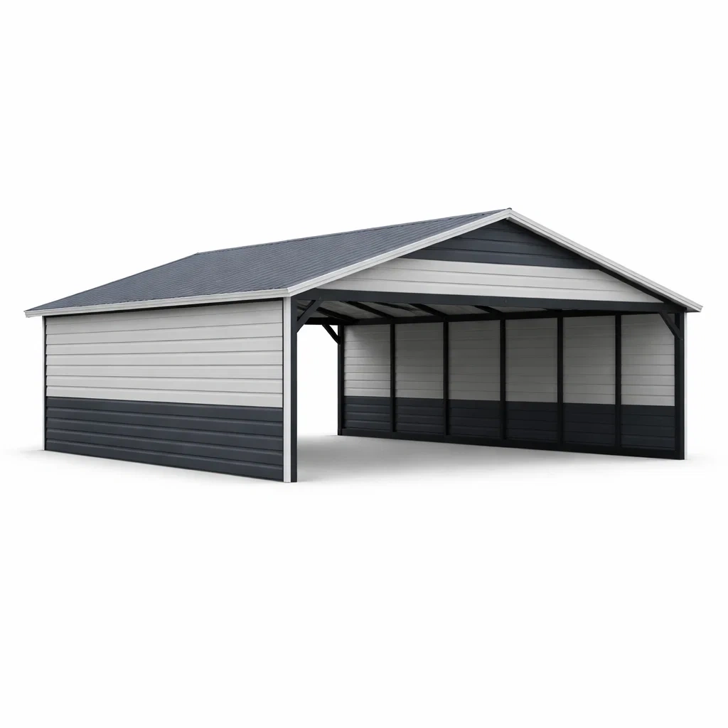 Abri voiture en métal gris clair et foncé
