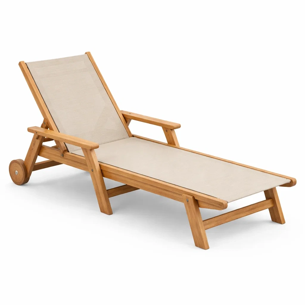 Matériaux : Structure en bois de teck, tissu en textilène