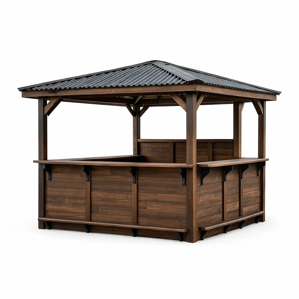 Kiosque bar de jardin en bois avec toit en métal